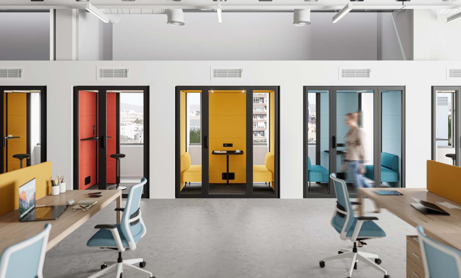 Tek kişilik ofis kabini modelleri, telefon görüşmeleri ve bireysel çalışma için optimize edilmiştir. Ofis kabini çözümlerimiz, daha ekonomik seçenekler sunar.